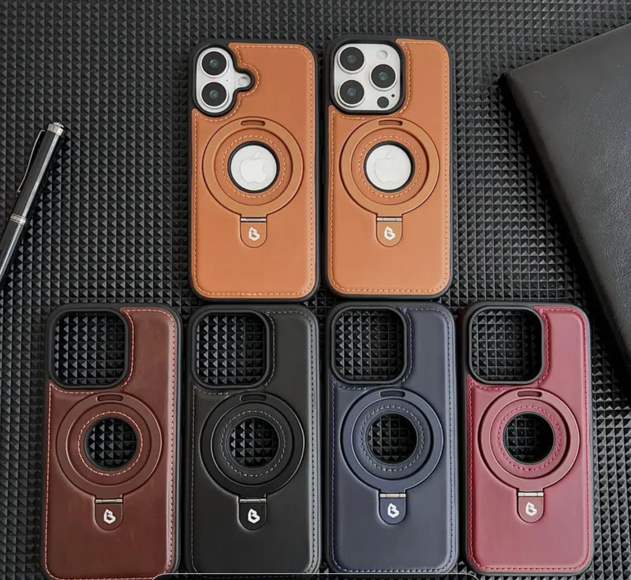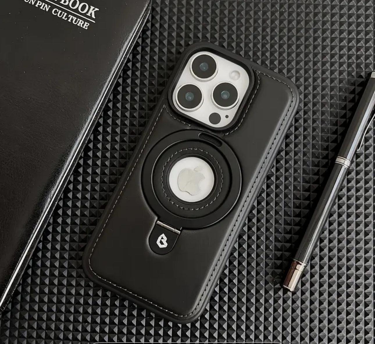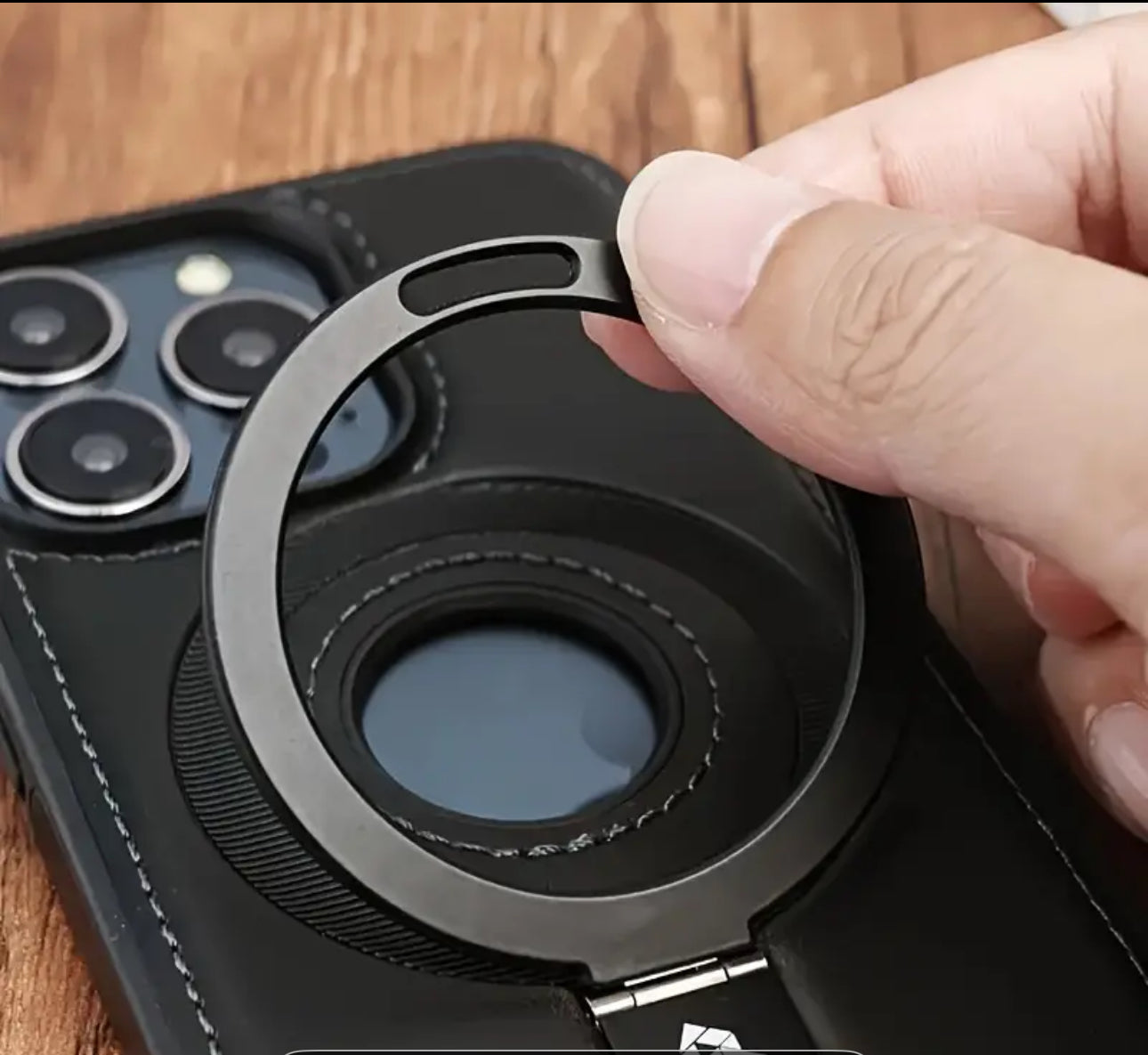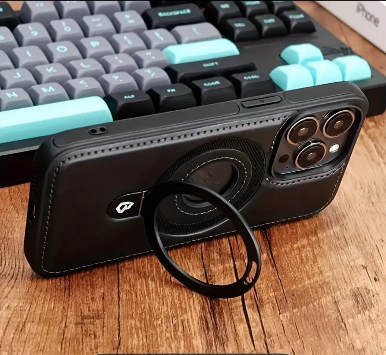 📱 Coque iPhone cuir MagSafe avec support anneau 360°